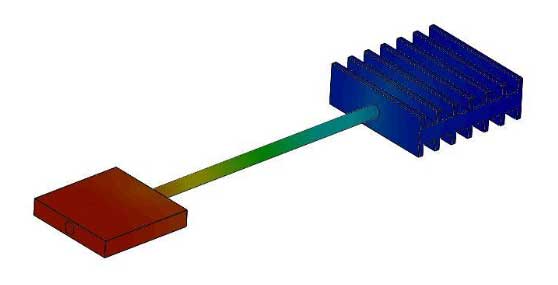 HEAT PIPE SYSTEM EXAMPLE: We want to determine the temperature drop at a given watt. Heat source dissipating 60 watts through a ¼ inch water fill heat pipe to air cooled fins with 0.5w/in2/°c above ambient.