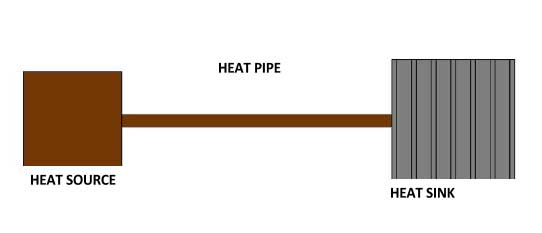 Heat pipe system design, An additional temperature drop, normally the most significant one, will be found between the heat sink and the ambient air. This drop (ΔT2) must be added to ΔT1 to obtain the source temperature.